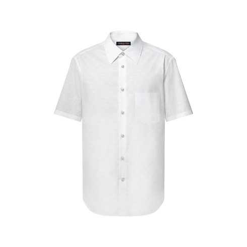 Esta camisa clásica de manga corta es una opción fresca para los días cálidos, confeccionada en algodón orgánico blanco con un motivo Monogram tono sobre tono en Jacquard. El botón superior LV, así como la etiqueta tejida con logotipo LV y las flores Monogram realzan la tapeta. Esta prenda versátil puede combinarse con el traje Monogram de corte Napolitana a juego para lograr un refinado juego de superposiciones.