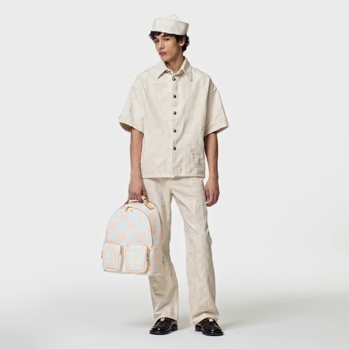 Esta fresca camisa vaquera de manga corta presenta un corte holgado ideal para los días de ocio junto al mar. Incluye un motivo Damoflage texturizado realizado en Jacquard en tonos crema, que se realza con una inscripción «Marque L.Vuitton déposée» bordada en el pecho. Esta pieza informal, perfecta para lucir un look veraniego con el pantalón a juego, incorpora botones abombados de color dorado que recuerdan a los uniformes navales.