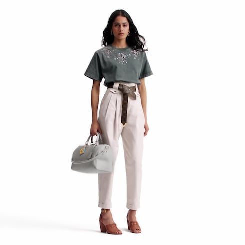 Esta cómoda camiseta en suave punto de algodón destaca por el acabado sobreteñido de aire informal. Ideal para looks de diario, presenta un corte recto clásico y cuello redondo. Se adorna con brillantes cristales bordados en el pecho y los hombros, que añaden un alegre toque final.