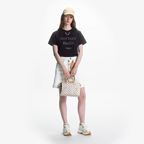 Esta alegre camiseta básica, confeccionada en punto de algodón, luce un distintivo Louis Vuitton revertido. Este motivo va estampado sobre el pecho, con un característico efecto moteado. La prenda se remata con una emblemática cadena, que aporta el toque distintivo de la Maison.