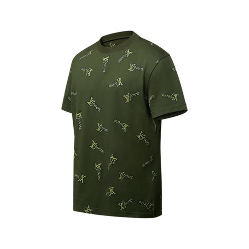 Esta camiseta está confeccionada en tejido Jacquard de suave algodón orgánico en tonos verde caqui. Presenta el motivo gráfico LV Lovers realizado en fil coupé, que crea una ligera textura con una nota de color a contraste. Esta llamativa prenda de estilo informal brinda un distintivo toque alegre a los looks de diario.