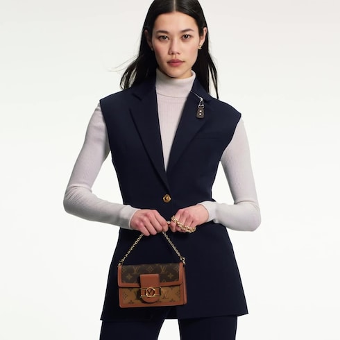 La cartera Dauphine combina lona Monogram y lona Monogram Reverse. Incorpora todos los detalles distintivos de la emblemática línea homónima: el diseño de estilo vintage, el ribete en piel de becerro y el cierre LV Circle. Esta pieza fina y espaciosa incluye una cadena extraíble de color dorado, que permite lucirla de varias maneras.