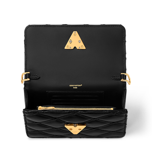 La nueva cartera GO-14, confeccionada en preciada piel de cordero, es perfecta para combinar con looks de día y de noche. Su diseño acolchado se realza con detalles distintivos, como un cierre LV y una cadena deslizante de eslabones redondos entrelazados, que permite llevarla de varias maneras. Se completa con apliques de color dorado, que pueden retirarse para convertirla en un elegante modelo de mano.