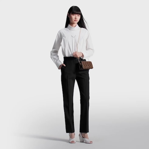 La cartera Lily, confeccionada en lona Monogram, destaca por su elegante forma rectangular y discreto aire retro. Presenta una solapa con una placa de color dorado, adornada con remaches y el distintivo Louis Vuitton grabado. Este modelo, con capacidad suficiente para guardar los artículos imprescindibles, puede llevarse de distintas formas gracias a la cadena ajustable y extraíble, que incorpora un colgante LV Circle.