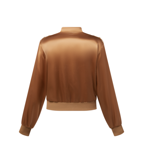 Esta cazadora bomber se realza con detalles inspirados en los códigos de temporada, que convierten esta prenda imprescindible en toda una declaración de estilo. Confeccionada en satén de seda de doble cara de un luminosos tono metálico, presenta acabados acanalados tonales en el cuello, los puños y el bajo, que acentúan el estilo deportivo clásico de la prenda. En el pecho se aprecian románticos y minuciosos motivos florales creados con cuentas bordadas, mientras que el forro de seda Monogram añade una sutil nota distintiva.