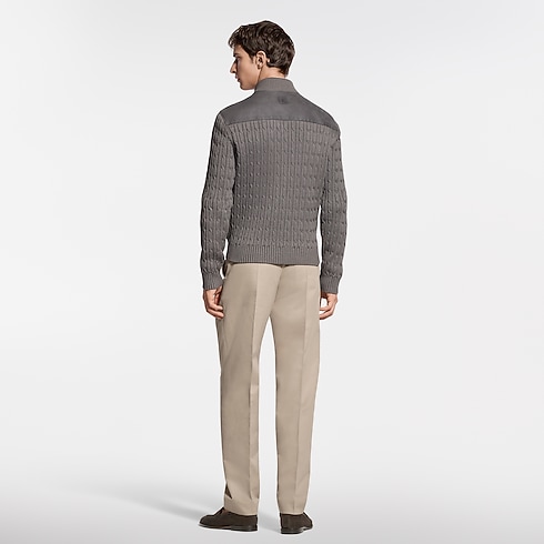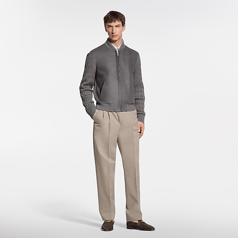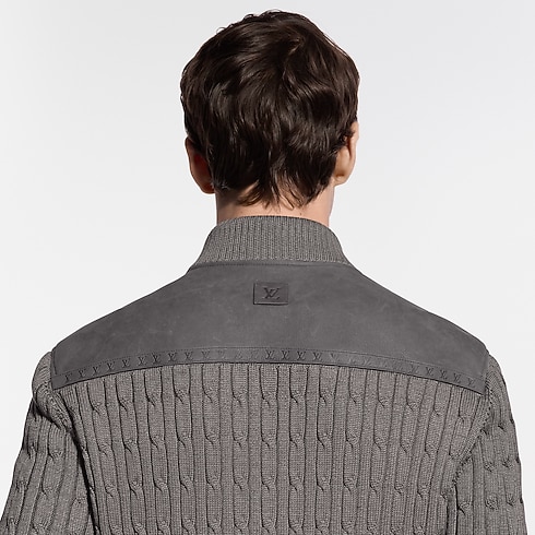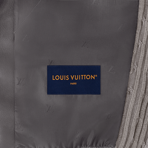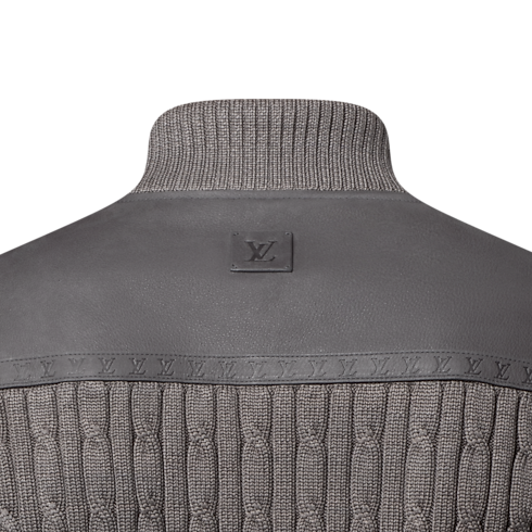 Esta elegante cazadora de color marrón Taupe es una versátil prenda exterior de entretiempo. Está elaborada en piel mate granulada en la parte delantera y el canesú trasero, y en mezcla de seda brillante con un diseño de punto de ochos en las mangas y la espalda. Entre sus detalles distintivos, destacan un logotipo LV metálico en el pecho y bandas de piel LV Lozine a lo largo de la cremallera, que evocan la herencia en marroquinería de la Maison.
