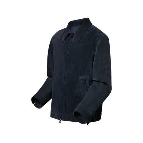 Esta cazadora de ante, elaborada en piel de becerro ligera y flexible, luce un elegante acabado de color azul oscuro. Incorpora una sutil cinta tono sobre tono con logotipos LV en relieve en los bolsillos y la parte trasera, inspirada en los icónicos baúles de Louis Vuitton. Ideal para ampliar el abanico de looks profesionales, esta moderna pieza de entretiempo puede combinarse con un pantalón de sastre o llevarla sobre un traje.
