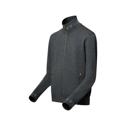 Esta cazadora de punto de doble cara presenta el exterior en lana orgánica de color gris oscuro y el interior en algodón suave. De estilo sobrio, se realza con motivos Monogram en Jacquard en el cuello y los puños, visibles si se luce bajo un abrigo o una chaqueta. Este modelo cómodo y refinado puede combinarse con el pantalón a juego para crear un elegante conjunto de viaje.