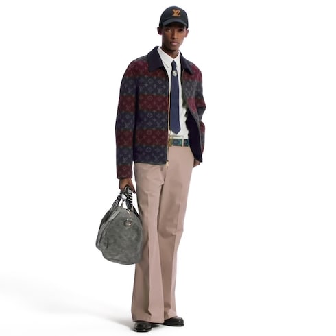 Esta cazadora reversible de doble cara se ha confeccionado en lujosa mezcla de lana, cachemir y seda. Presenta un anverso liso en atemporal color azul marino, que destaca por el adorno LV metálico en el pecho, y un reverso con el motivo Monogram Heritage realizado en Jacquard con rayas azules y burdeos de estilo deportivo. Esta prenda utilitaria, perfecta para el otoño, es ideal tanto para la oficina como la ciudad.