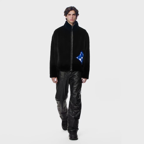 Esta exclusiva cazadora reversible, perteneciente a la Colección Cápsula Ski, presenta un anverso en suave pelo de visón de color negro intenso, que se adorna con unos refinados logotipos LV Ice en azul hielo y blanco a contraste realizados en intarsia. El reverso, confeccionado en nailon técnico, luce un motivo gráfico integral LV Ice que acentúa la silueta deportiva. Esta llamativa prenda es ideal para los momentos festivos après-ski.