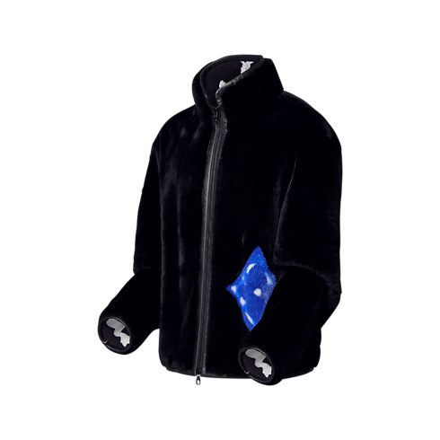 Esta exclusiva cazadora reversible, perteneciente a la Colección Cápsula Ski, presenta un anverso en suave pelo de visón de color negro intenso, que se adorna con unos refinados logotipos LV Ice en azul hielo y blanco a contraste realizados en intarsia. El reverso, confeccionado en nailon técnico, luce un motivo gráfico integral LV Ice que acentúa la silueta deportiva. Esta llamativa prenda es ideal para los momentos festivos après-ski.