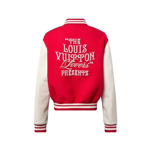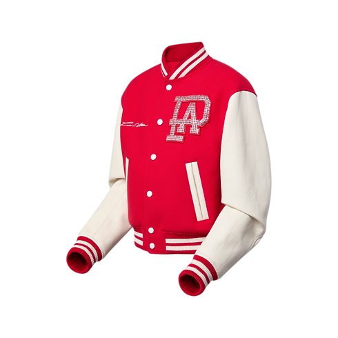 Esta emblemática cazadora universitaria, inspirada en el pasado de Pharrell Williams como batería en la banda del instituto Princess Anne de Virginia, combina la tradición estadounidense con la maestría artesanal de la Maison. Vista en el desfile Primavera-Verano 2024, presenta un cuerpo en un tono rojo vivo y mangas en piel de becerro blancas con un motivo Damier tonal en relieve. Un distintivo Louis Vuitton bordado con perlas en la parte trasera y un parche PA bordado con cristales en el pecho rinden homenaje a la historia del diseñador.