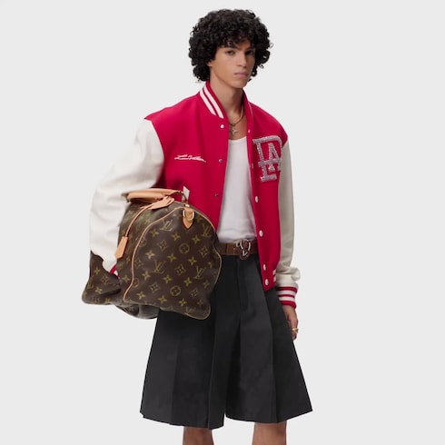 Esta emblemática cazadora universitaria, inspirada en el pasado de Pharrell Williams como batería en la banda del instituto Princess Anne de Virginia, combina la tradición estadounidense con la maestría artesanal de la Maison. Vista en el desfile Primavera-Verano 2024, presenta un cuerpo en un tono rojo vivo y mangas en piel de becerro blancas con un motivo Damier tonal en relieve. Un distintivo Louis Vuitton bordado con perlas en la parte trasera y un parche PA bordado con cristales en el pecho rinden homenaje a la historia del diseñador.