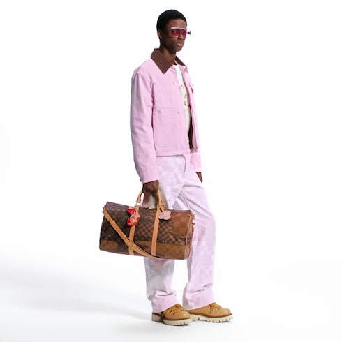 Esta cazadora utilitaria con cremallera, parte de la colaboración entre Pharrell y Nigo para la Colección Otoño-Invierno 2025, destaca por su tono rosa cerezo, un homenaje al legado japonés del diseñador. El ligero forro acolchado la convierte en una opción versátil para distintas estaciones. El diseño se completa una etiqueta delantera con la inscripción «Marque L.Vuitton Déposée», un cuello acanalado en piel con efecto pana y botones a presión con acabado nacarado.