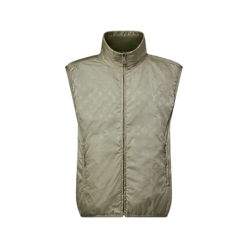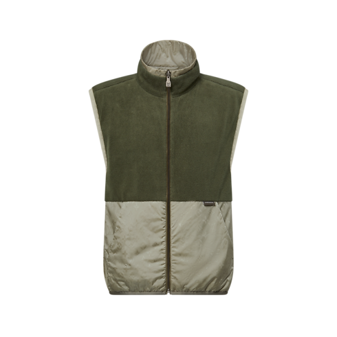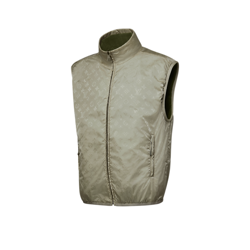 Este chaleco reversible en elegantes tonos verdes está confeccionado en tejido técnico y luce un motivo Monogram en Jacquard. Presenta un canesú en tejido de felpa de color verde, que realza la parte superior del cuerpo y aporta calidez al deportivo diseño color-block. Esta prenda, que destaca entre los suaves tonos neutros de esta colección, es fácil de combinar con otras piezas para crear un look primaveral con una sutil nota distintiva.