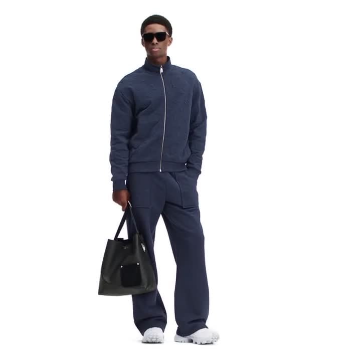 Esta versátil chaqueta de chándal, elaborada en punto de algodón de color azul oscuro, aporta un elegante toque distintivo a los looks informales de diario. Está adornada con un motivo Monogram integral, incorporado al suave tejido de punto con un efecto en relieve. Esta prenda fácil de combinar, perfecta para viajar, puede llevarse con el pantalón a juego para crear un conjunto refinado.