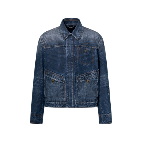 Esta chaqueta de estilo utilitario, presentada en el desfile Primavera-Verano 2026, luce un clásico estampado príncipe de Gales sobre denim índigo con un acabado vintage lavado para así fusionar códigos casuales y sartoriales. El bordado de Louis Vuitton Paris sobre el bolsillo del pecho y los botones en tono oro envejecido aportan un carácter distinguido a la silueta depurada. El pantalón a juego completa los conjuntos con un toque vanguardista y sofisticado.
