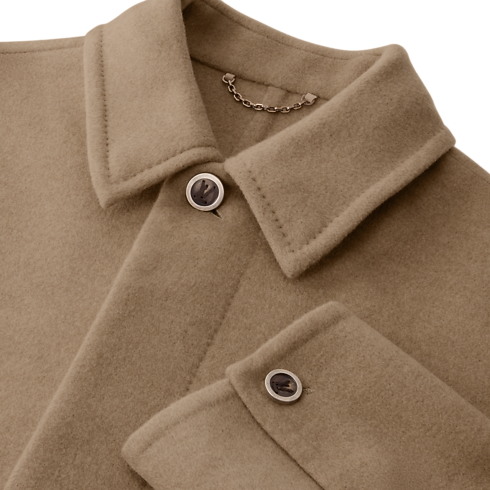 Este atemporal chaquetón de color marrón caramelo se ha confeccionado en cachemir cepillado de doble cara, que aporta una suavidad y calidez incomparables. Este modelo sin forro es una capa exterior fluida y elegante. La pieza se distingue por las puntadas LV en el botón superior y la trabilla en piel VVN en la parte trasera del cuello, así como por las puntadas decorativas, que añaden un toque distintivo.