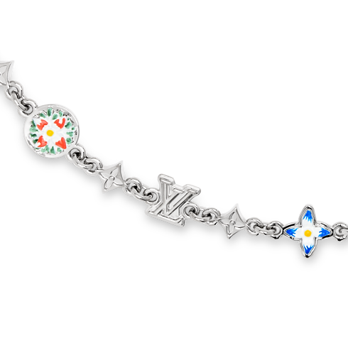 El cinturón de cadena Monogram Flower es la elección ideal para quienes buscan una pieza emblemática con un sutil toque de color. Los delicados eslabones están compuestos por colgantes con forma de LV Initials y flor Monogram, elementos característicos del emblemático motivo Monogram de la Maison que se realzan con pequeñas pinceladas en tonos de inspiración floral. El acabado plateado de la pieza le confiere una versatilidad atemporal que perdura y se adapta a cualquier ocasión.