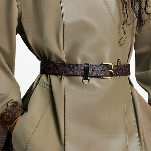 El moderno cinturón LV D-Ring combina un estilo renovado con elementos distintivos y atemporales de la Maison. Su ancha correa de lona está adornada con una alegre versión del motivo Monogram, reinterpretado como un estampado de leopardo. Se completa con una práctica anilla en forma de D, perfecta para acoplar un monedero o un colgante decorativo.