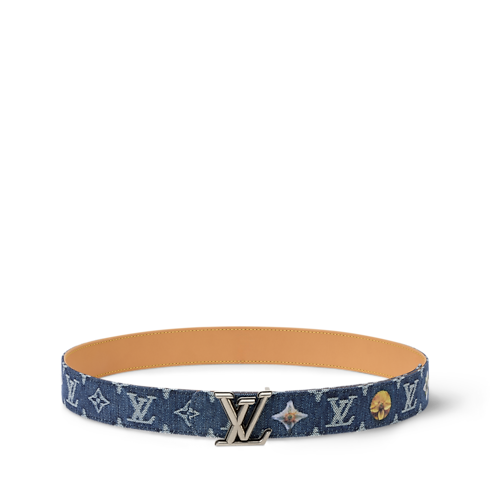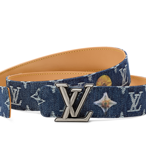 Cinturón reversible LV Dimension Monogram Denim Flower de 3,5 cm