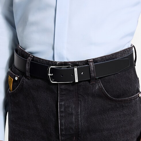 Este cinturón reversible Slender Taurillon Monogram de 3,5 cm, un homenaje a la historia artesanal de la Maison, es un diseño sobrio pero evocador. El anverso de color azul marino luce un sutil motivo distintivo de la Maison en relieve, mientras que el reverso liso se presenta con un elegante tono negro. Esta pieza se completa con una hebilla arquitectónica, que refleja la maestría de Louis Vuitton.