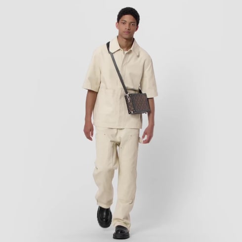 Este clutch Box para hombre, una propuesta del desfile Primavera-Verano 2020, refleja la historia de Louis Vuitton como fabricante de baúles. La pieza, de diseño rígido y compacto, se ha elaborado en lona Monogram y se completa con remaches y ribetes en piel negra. Incluye una bandolera ajustable para llevarlo al hombro o cruzado, un bolsillo interior con cremallera y dos amplios compartimentos extensibles.