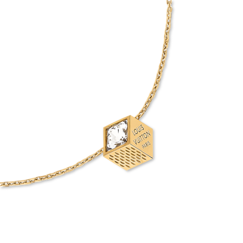 El alegre collar LV Cube es una reinterpretación actual del Pateki, un juego de ingenio creado por Gaston Vuitton en 1932. La pieza central del diseño es un cubo metálico dorado con grabados que evocan la lona Damier y resplandeciente cristales. Se completa con un logotipo Louis Vuitton Paris, que aporta un toque adicional de la Maison a esta encantadora y divertida pieza.