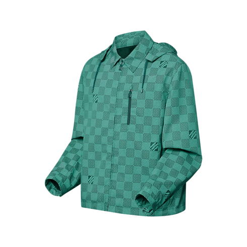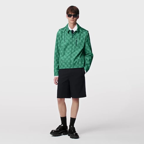 Este cortavientos técnico con capucha, inspirado en las aventuras marítimas de la colección, combina funcionalidad y estilo. Se realza con un estampado Damier Monogram, que incorpora microdetalles Monogram en cuadros alternos e inscripciones «Marque L.Vuitton déposée» dispersas. Esta pieza gráfica en refinados tonos verdiazulados aportará un moderno aire náutico a los conjuntos informales.