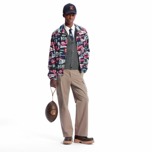 Este cortavientos gráfico, confeccionado en tejido técnico repelente al agua, se distingue por el estampado LV Club Flags, inspirado en los equipos de deporte universitarios. El patrón de coloridos banderines sobre un fondo azul marino presenta diferentes motivos distintivos de la Maison. Esta prenda deportiva se completa con un forro Monogram, un cierre de cremallera y cintura y puños de punto elástico.