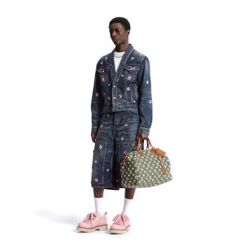 El zapato derby LV Remix, elaborado en piel de becerro, es una versión moderna de las clásicas botas de senderismo. Incorpora cordones anchos y mosquetones con flores Monogram grabadas, además de detalles característicos de los artículos de marroquinería de Louis Vuitton, como un llavero de lona Monogram y una trabilla trasera en piel natural con puntadas amarillos. El modelo se completa con una suela gruesa de goma.