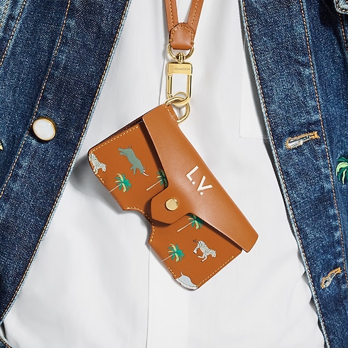 Este estuche para gafas convierte un accesorio esencial y funcional en una pieza aún más imprescindible. El complemento en piel está decorado con el motivo transversal presentado en el desfile Primavera-Verano 2026, como parte de la colección Louis Vuitton x The Darjeeling Limited.