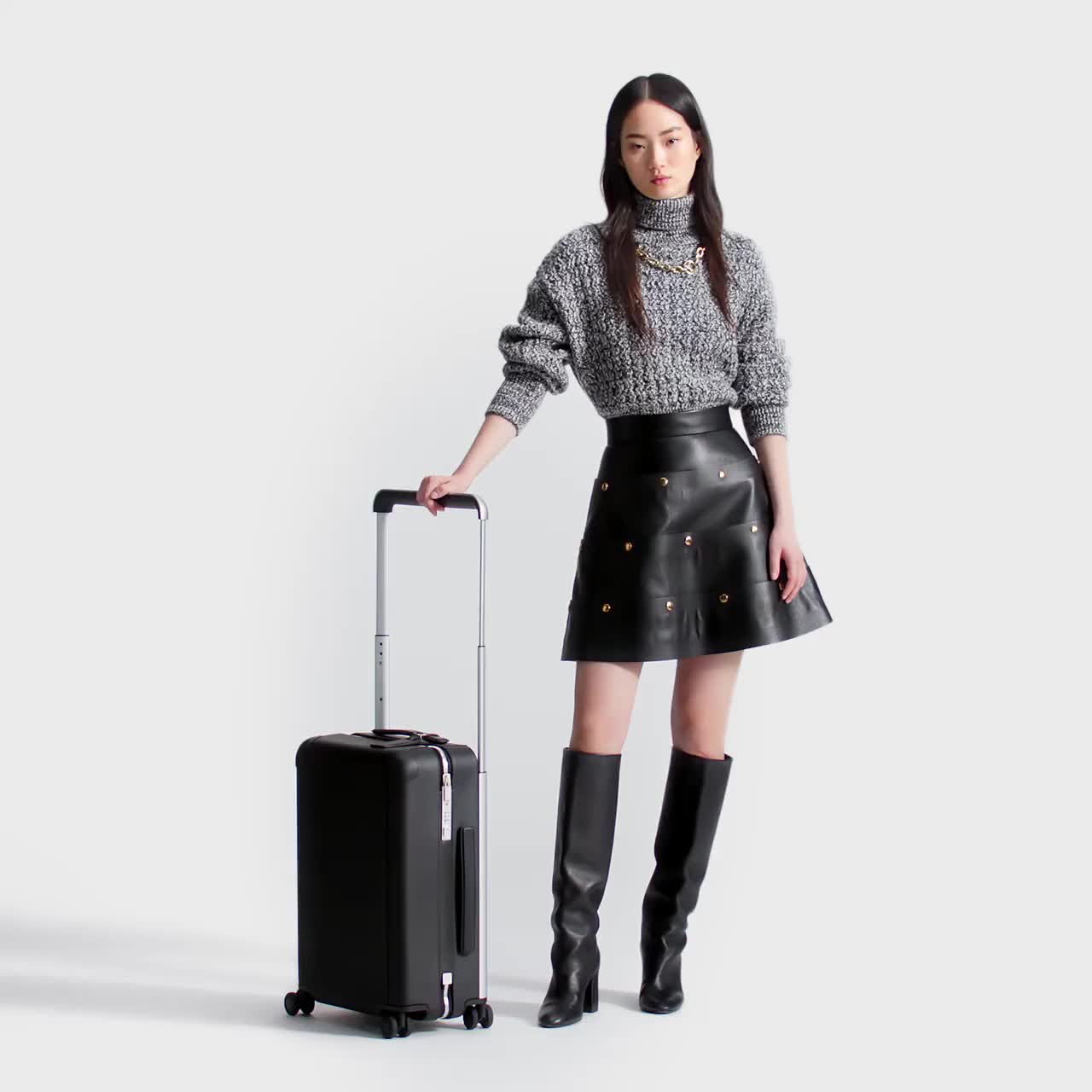 Esta lujosa maleta Horizon 55, un modelo ligero con tamaño de cabina, es una creación de Marc Newson, considerado el diseñador industrial más influyente de su generación. Se caracteriza por un amplio tirador exterior que da lugar a un interior completamente plano, e incluye un discreto cierre TSA y las cuatro ruedas más cómodas en la historia de la Maison. La pieza puede personalizarse en las boutiques Louis Vuitton con rayas de colores e iniciales estampadas.