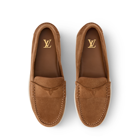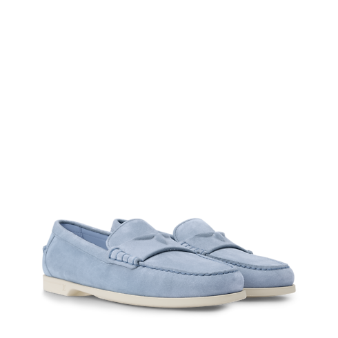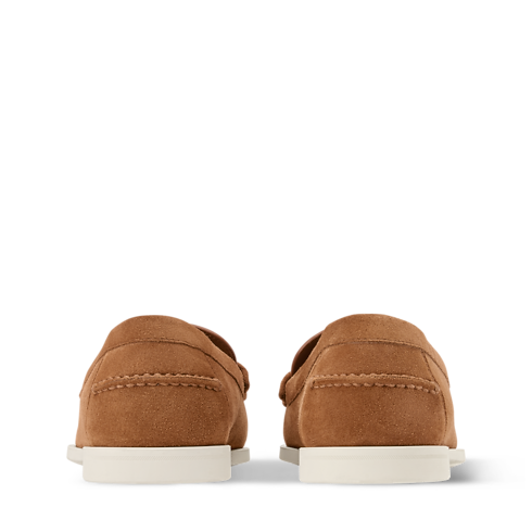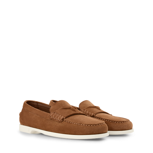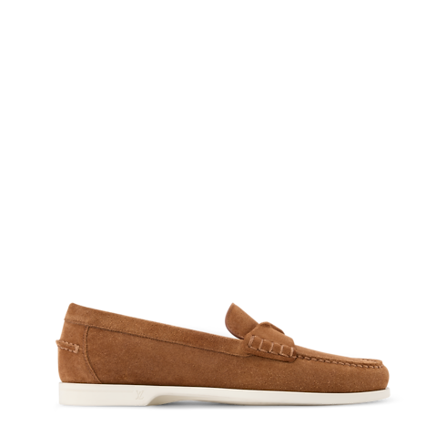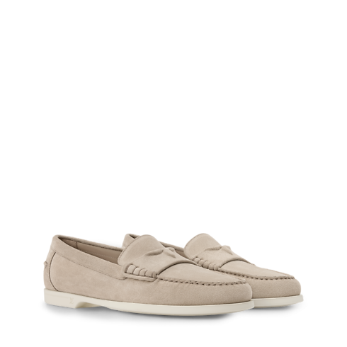El mocasín LV Croisette en ante de piel de becerro se inspira en la elegancia informal de la Riviera Francesa para ofrecer un diseño refinado, ideal para los días más cálidos. La tira en el empeine luce un detalle tonal de media flor Monogram. La suela de goma flexible y ligera está adornada con el logotipo LV Initials.