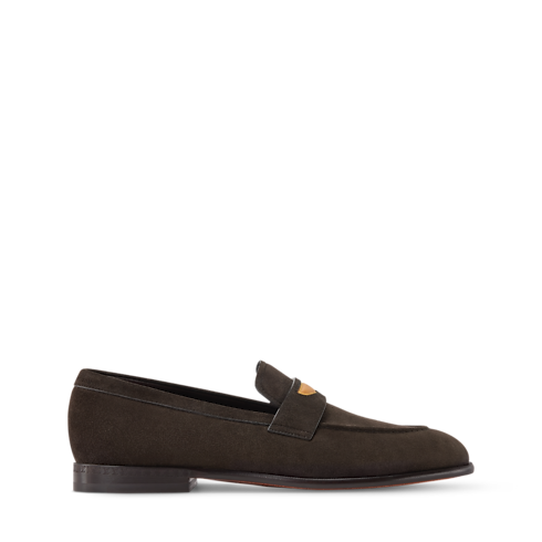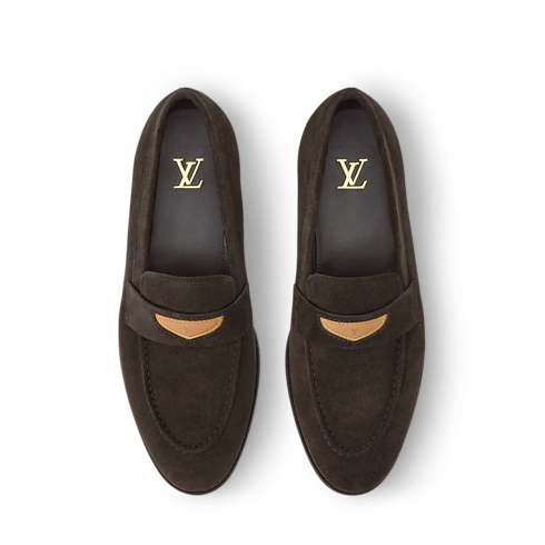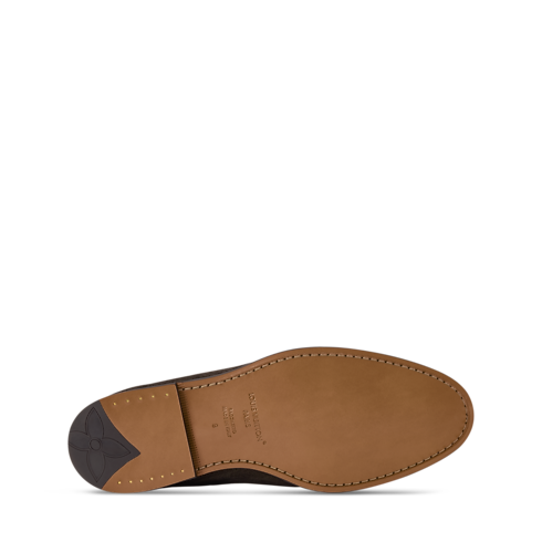 Este mocasín LV Gent se ha confeccionado en ante de piel de becerro. Presenta un acabado muy suave y flexible gracias al fino material y la tradicional construcción sacchetto. La tira del empeine se adorna con una inserción en piel natural, que luce el logotipo LV Initials en relieve y puntadas amarillas, inspiradas en la línea de marroquinería de la Maison.
