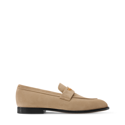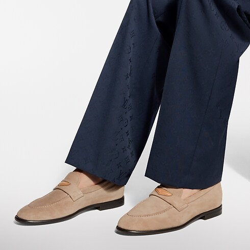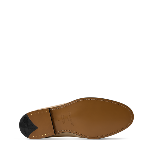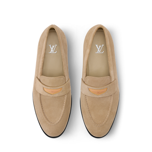 Este mocasín LV Gent se ha confeccionado en ante de piel de becerro. Presenta un acabado muy suave y flexible gracias al fino material y la tradicional construcción sacchetto. La tira del empeine se adorna con una inserción en piel natural, que luce el logotipo LV Initials en relieve y puntadas amarillas, inspiradas en la línea de marroquinería de la Maison.