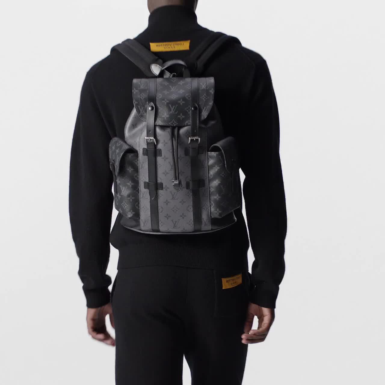 La mochila Christopher PM es una versión compacta de los robustos modelos de senderismo. Presenta un vistoso diseño en lona Monogram Eclipse Reverse, y cuenta con ribetes en piel de color negro. La pieza incluye dos bolsillos laterales para acceder fácilmente a los objetos imprescindibles, así como una solapa en piel con un cierre de botón a presión, que permite guardar las pertenencias de forma segura.