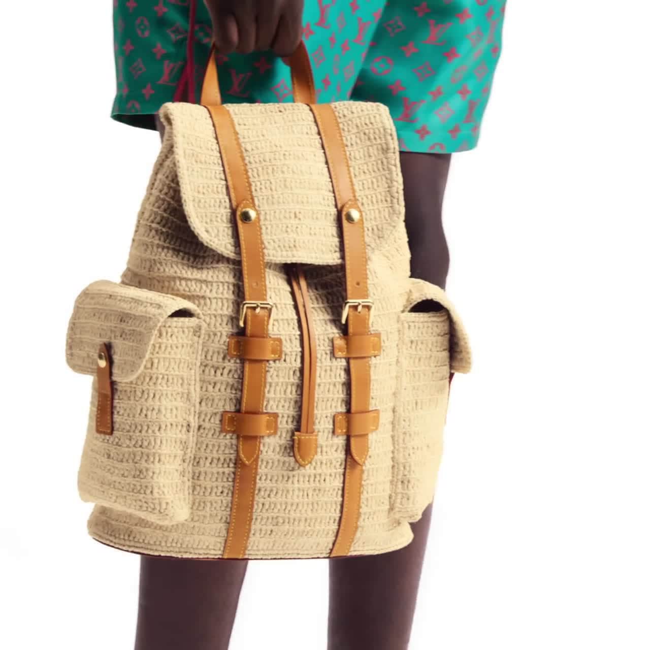 La mochila Christopher PM se ha confeccionado en rafia, un material de fibras delicadas muy difícil de tejer con esta forma. Su diseño distintivo, un gran ejemplo de la maestría artesanal de la Maison, incluye dos bolsillos laterales y ribetes en piel natural. Este veraniego modelo se ha elaborado a mano, por lo que cada pieza es única.