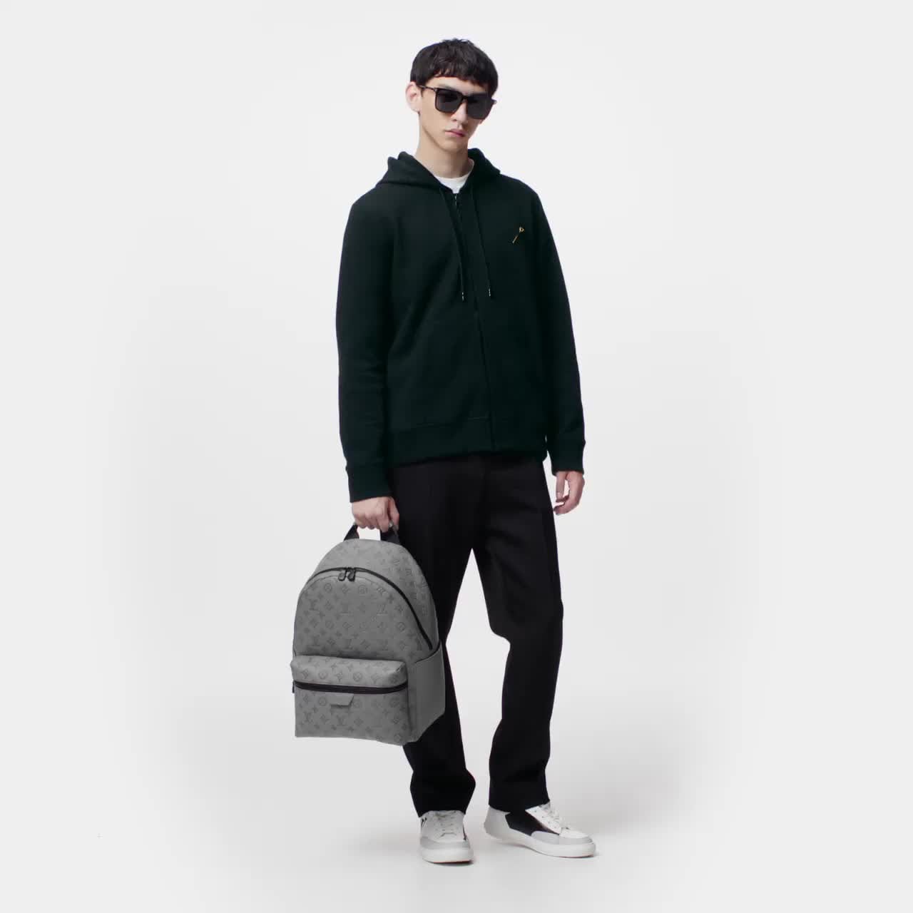 Esta cómoda mochila Discovery, confeccionada en piel de becerro con un motivo Monogram grabado, presenta una práctica forma anatómica y flexible. Cuenta con tres bolsillos exteriores para acceder con facilidad a los artículos imprescindibles y varios compartimentos interiores que permiten llevar todas las pertenencias bien organizadas. Este discreto y moderno accesorio se completa con piezas metálicas de color negro.