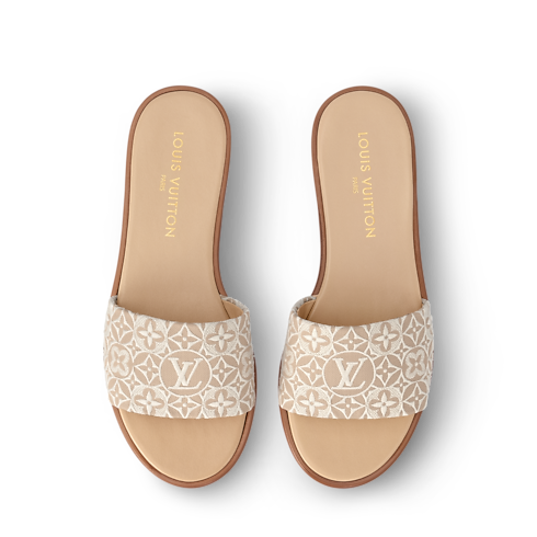 El mule plano Lily se reinterpreta esta temporada en tejido Jacquard con un llamativo motivo Monogram geométrico bordado, que combina logotipos LV Initials y flores Monogram. El diseño, que puede calzarse fácilmente, cuenta con numerosos detalles refinados. Este elegante modelo aporta un toque informal y veraniego a cualquier look.