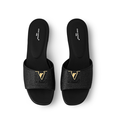 Esta versión de temporada del mule plano LV Mare está confeccionada en rafia, que le brinda un toque artesanal. Presenta detalles en refinada piel de becerro a juego, como la plantilla y un adorno LV Initials, característico de la línea. Este modelo atemporal se completa con una suela fina en piel.