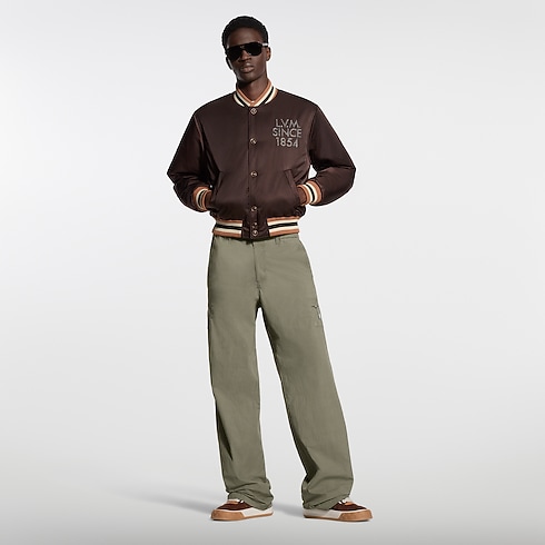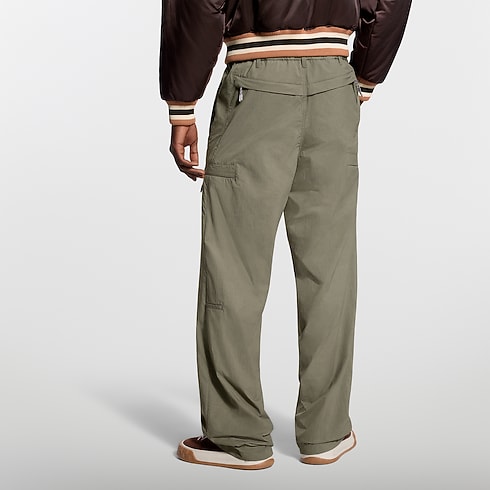 Este pantalón cargo de color verde caqui, confeccionado en un tejido técnico arrugado y con múltiples bolsillos, evoca la refinada temática alpinista vista en la pasarela Primavera-Verano 2026. Cuenta con una cómoda cintura, que presenta un diseño elástico en la parte trasera y se ajusta con un cordón interior, y luce el logotipo L.V.M. Legacy bordado en la pernera izquierda. Este modelo es una propuesta atemporal y funcional, ideal para completar los looks de diario.