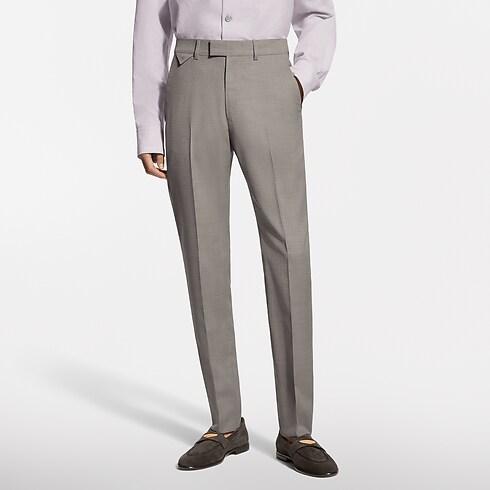 Este pantalón de corte cigarette en un delicado tono beige claro, confeccionado en fina lana virgen, cuenta con un sutil motivo Micro Flower Damier tono sobre tono realizado en Jacquard y una etiqueta LV tejida en la parte trasera. Este estilizado diseño puede combinarse con la chaqueta Napolitana a juego para crear un traje moderno y elegante, ideal para reuniones de negocios, veladas estivales o bodas.