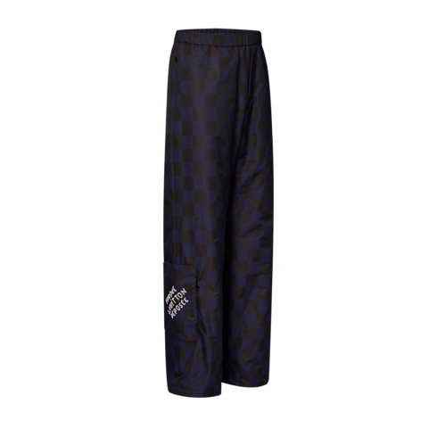 Este pantalón, confeccionado en tejido técnico y ligero, es el compañero de viaje perfecto. Destaca por el motivo gráfico Damier Pop de la Colección Primavera-Verano 2024 y el parche tipo joya con inscripción «Marque L. Vuitton déposée» bordado con cristales en el bolsillo de parche de la pernera derecha. Esta moderna prenda se puede combinar con la chaqueta deportiva a juego para lucir un look coordinado cómodo y atrevido.