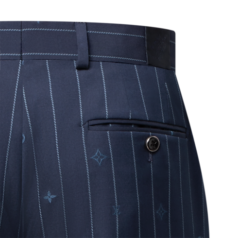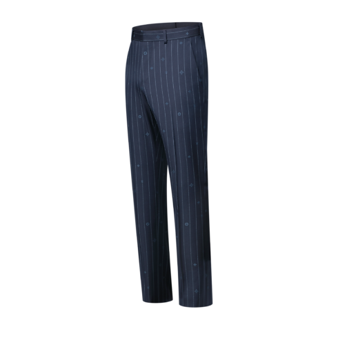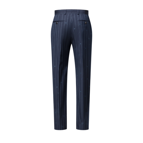 Este pantalón de corte cigarette en color azul marino está confeccionado en exquisita lana. Destaca por la reinterpretación del clásico patrón de raya diplomática, que se presenta como un motivo Monogram Pinstripes tonal realizado en Jacquard y detalles Monogram entre las rayas. Esta favorecedora prenda puede combinarse con la chaqueta a juego para lucir un elegante traje.