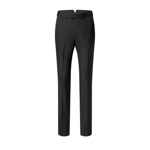 Este elegante pantalón negro de corte cigarette está exquisitamente adornado con el motivo LV Cheetah de esta colección. Esta versión del patrón gráfico felino en lujoso satén de Jacquard, realizado con lana de origen responsable, incorpora discretos motivos Monogram en un elegante juego de acabados mate y brillante. La chaqueta de corte cigarette a juego crea un traje depurado que acaparará todas las miradas.