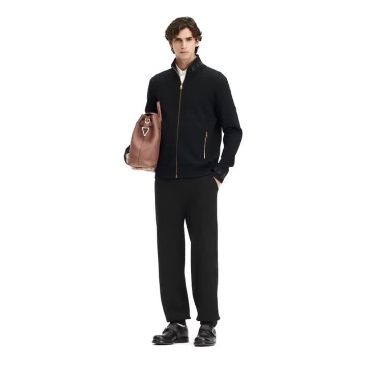 Este pantalón está confeccionado en un elegante tejido de doble cara de color negro que presenta el exterior en mezcla de lana y el interior en suave algodón. Una prenda cómoda y refinada, muestra una silueta minimalista que se realza con detalles Monogram en Jacquard en los bajos. Puede combinarse con la cazadora a juego para crear un exquisito conjunto de viaje.