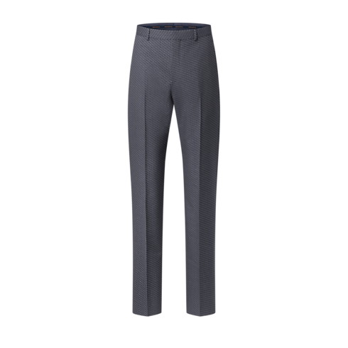 Este elegante pantalón de sastre está confeccionado en una mezcla de lana, algodón y seda ligera y transpirable, ideal durante los meses más cálidos. Su tejido azul marino está adornado con un motivo LV Interlocked en Jacquard, que añade un detalle gráfico y distintivo. Puede combinarse con la chaqueta de botonadura sencilla a juego para crear un traje de negocios refinado.