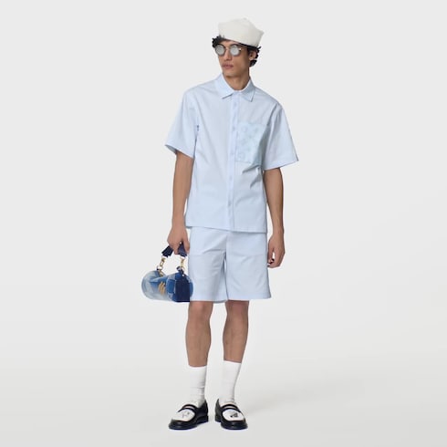 Estos versátiles pantalones cortos en sarga de algodón destacan por su diseño utilitario. Incorporan dos bolsillos de parche con cierre de botón, adornados con un motivo Monogram flocado de tacto aterciopelado. Esta prenda imprescindible de corte amplio se puede combinar con la camisa de manga corta a juego para crear un veraniego look informal.