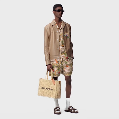 Estos refinados pantalones cortos de seda, ideales para el día o la noche, presentan una cómoda caída drapeada que brinda movimiento al tejido. Lucen un estampado Monogram Sand Beach, que incorpora símbolos icónicos de islas paradisíacas, como tablas de surf y flores. La prenda puede combinarse con una camisa a juego para crear un look gráfico.